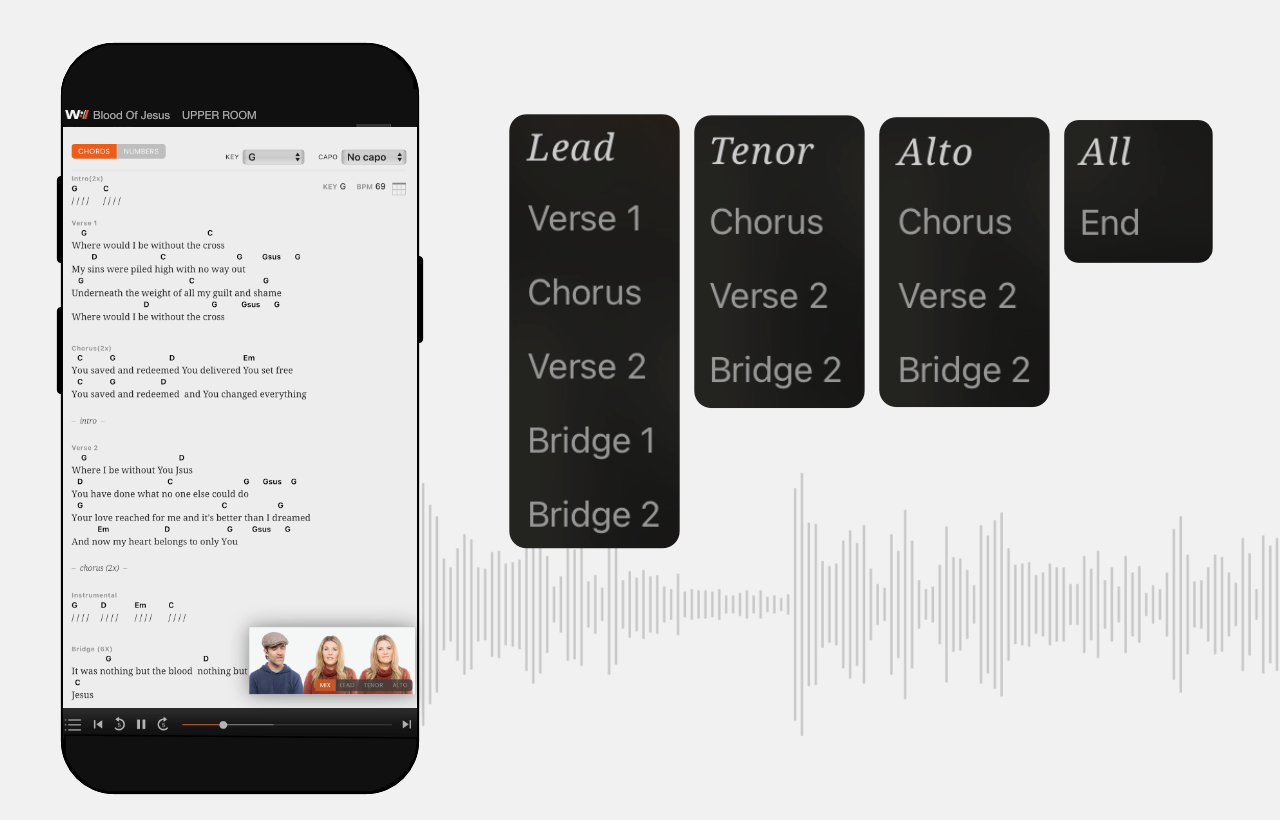 The only online worship vocal tool designed with your worship team in mind. Stop guessing and start singing with confidence.